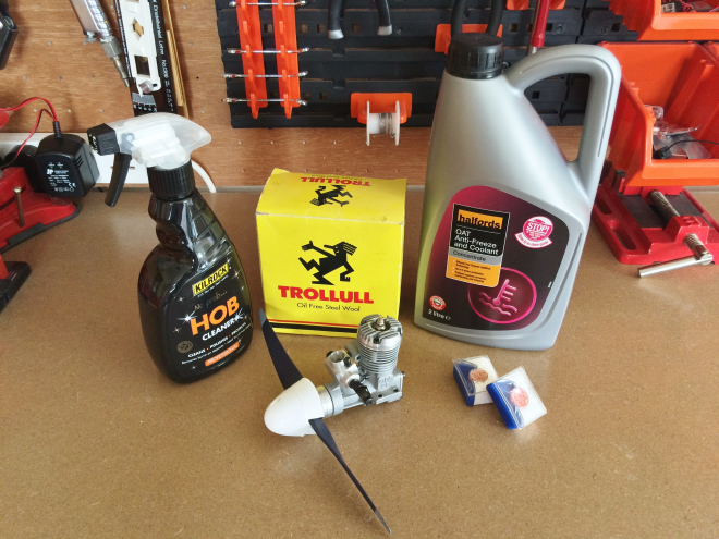 | Antifreeze in a slow cooker | Nominal | Require a slow cooker that is then kept solely for hobby use. | The dirt, if not removed in the cooker, is left very loose and comes off easily with a (soft plastic) scrubbing brush under running water. Once rinsed, oiled and re-assembled the engine is left looking immaculate. |