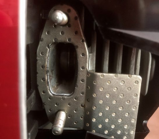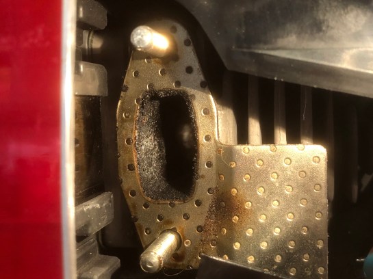 The result of using oil at a ratio of 50:1. Carbon deposits soon build up in the exhaust manifold and can harm the engine if not removed. Use 100:1 as per Honda’s later amended instructions.