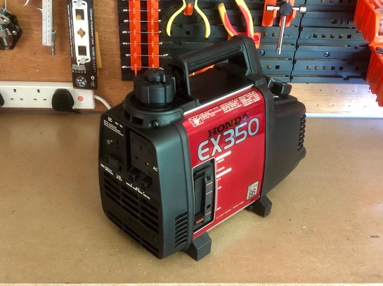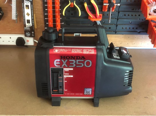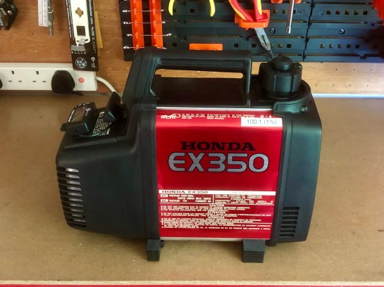 The diminutive yet indomitable Honda EX350 portable generator was introduced in 1987 and was the second-generation domestic generator from Honda. Notably it was the world’s first to introduce an inverter circuit. This was achieved though some wonderful engine miniaturisation to turn a three-phase multi-pole (15 poles AC and 6 poles DC) high-speed stator which, via an intermediate DC regulator/rectifier was then reconverted back to mains voltage AC current through a simple invertor. All standard stuff these days but novel at the time. The sine wave was a simple 50 Hz modified-square, but the important point was that it was stable.