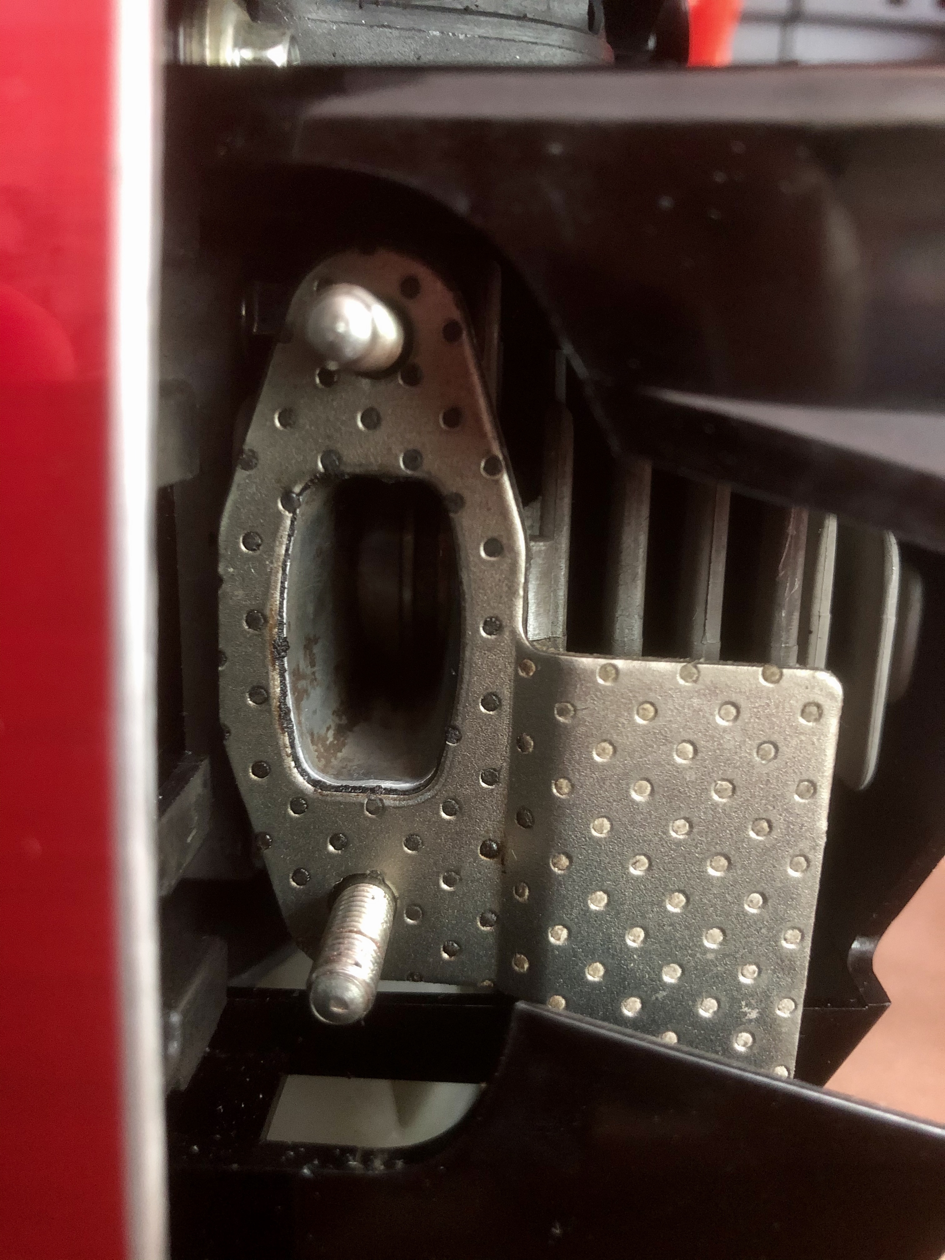 The main (shown here) and pilot jets within the carburettor quickly get blocked if old or poor quality fuel is left to sit for a long period of time. This will cause a lean mixture (not enough fuel and too much heat) and rpm surging. A quick blast with compressed air will unclog allowing light to be seen through the jet.
