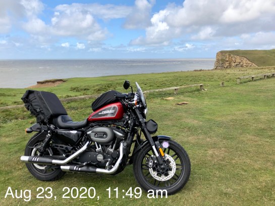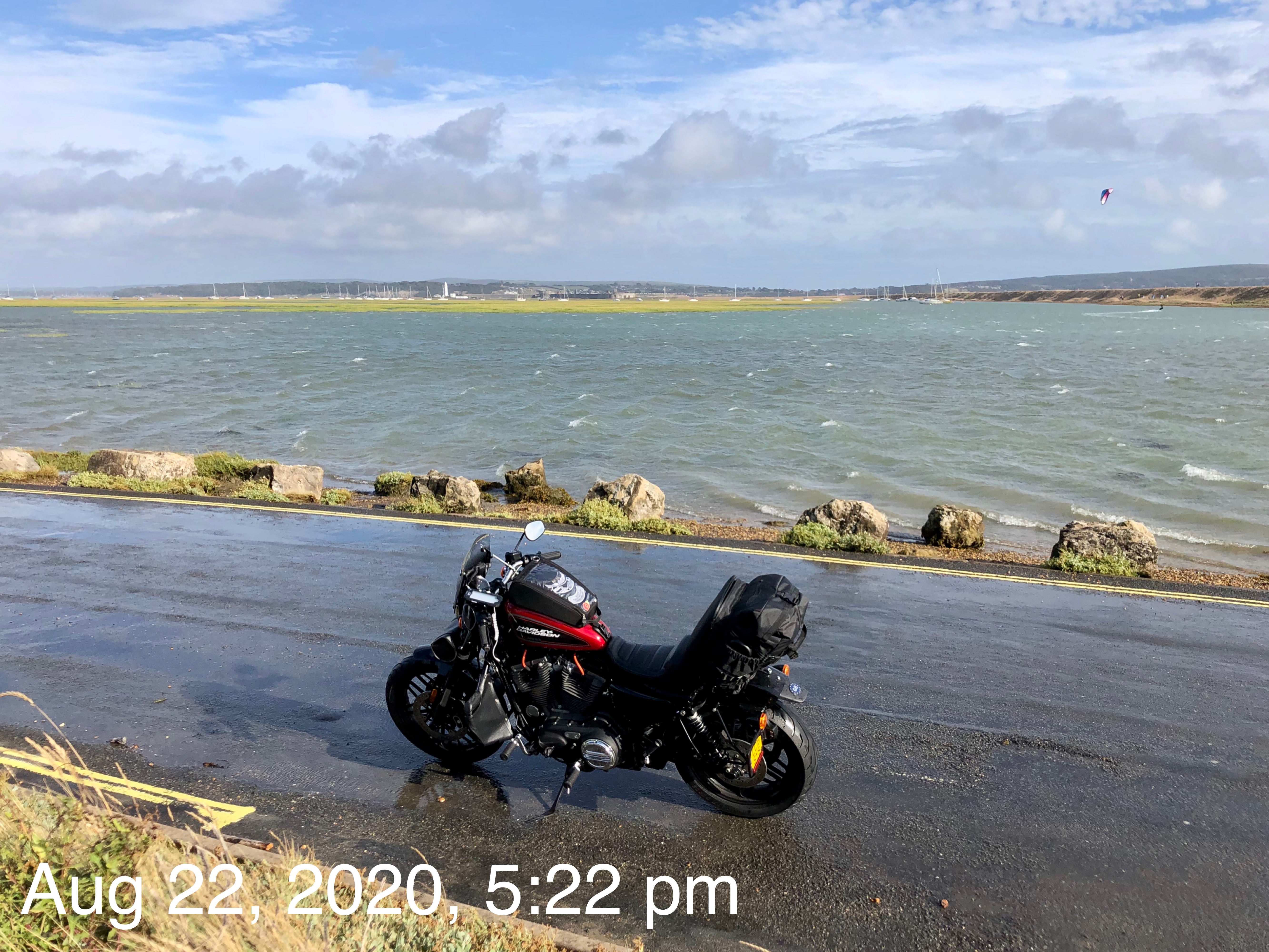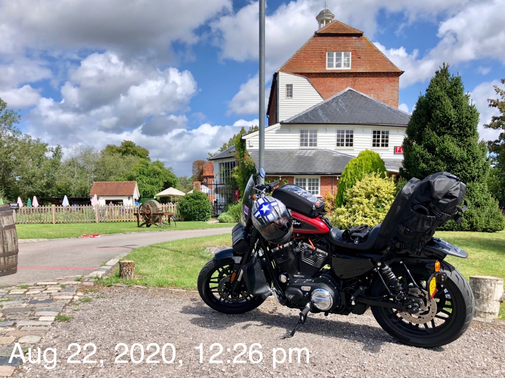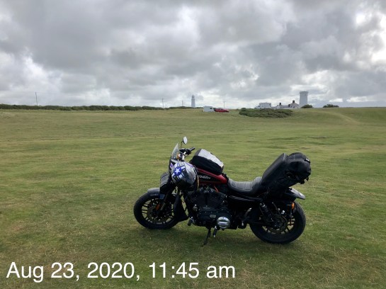 Through the stunning tree tunnel of the Straight Mile in the New Forest National park (Hampshire). Yes I saw lots of ponies! At the National Park Visitor Center I bumped into a number of riders from the New Forrest H.O.G who mentioned that I was minutes from the Southampton Harley Dealer and should definitely pay a visit. This I did and big shout out to Paddy and Lloyd who made me feel very welcome, made me a much needed coffee and gave my bike a quick look over 🙂My next stop killed two birds with one stone and took in New Point Lighthouse and Hurst Castle; an artillery fort built by Henry VIII in 1544 . This was as close as I could get by road but what a view. Very breezy and the bay seemed to be popular with kite surfers. My bike seemed to attract a fair bit of attention (mainly from BMW trailie riders) and all of it along the lines of despair at what the salt will do to my bike! Strangely none of them had heard of FS365.
