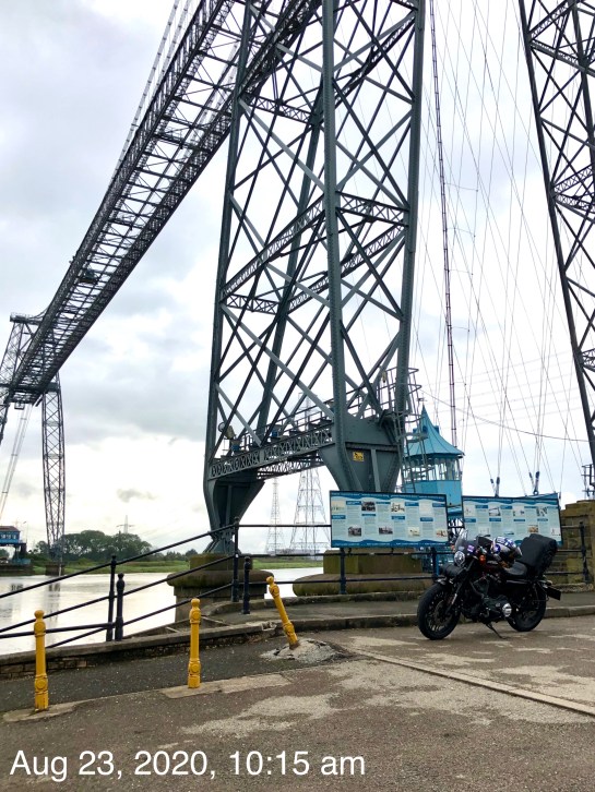 Next morning the weather was a little gloomy but soon picked up. After the obligatory ‘I was here’ photo outside the hotel I rode through Newport along the River Usk. Having grown up in the North East of England I am very familiar with the Tees Transporter Bridge. Newport has its very own transporter bridge so I had to stop and pay it a visit. The bridge and its little visitor experience hut were both open. Apparently, although a similar size to the Tees bridge, Newport’s bridge incorporates tension cables as part of it’s structure. This makes it more delicate looking and it is consequently over 1000 tonnes less in weight. Delicate looking it may be but its been standing and operating since 1906!