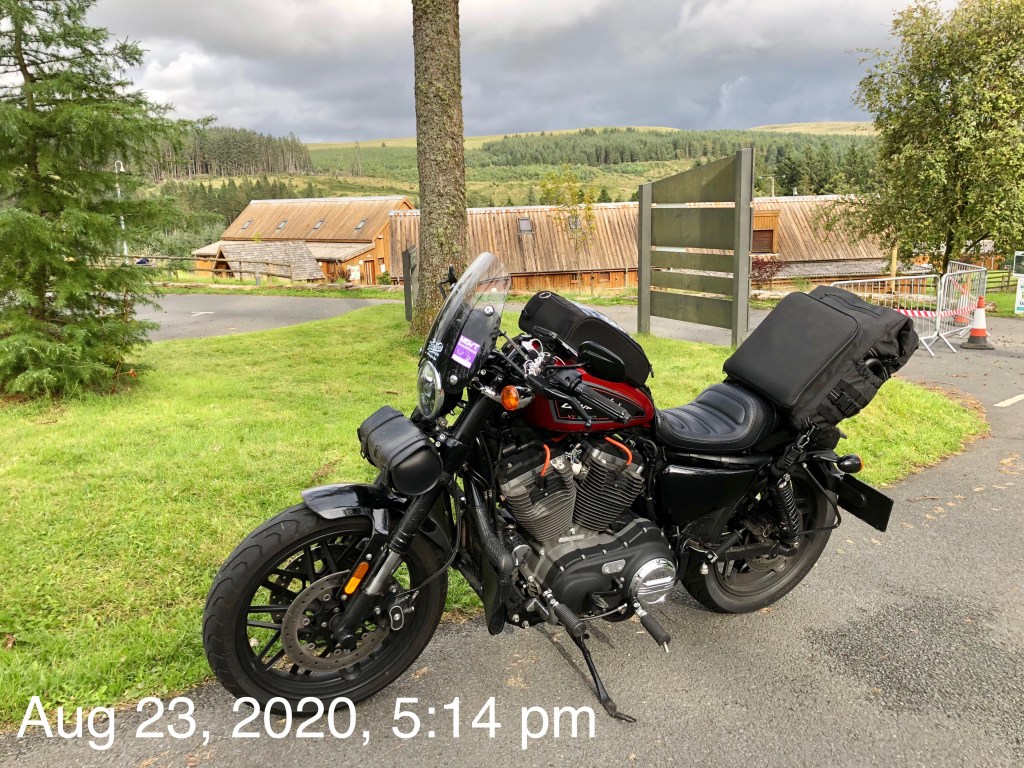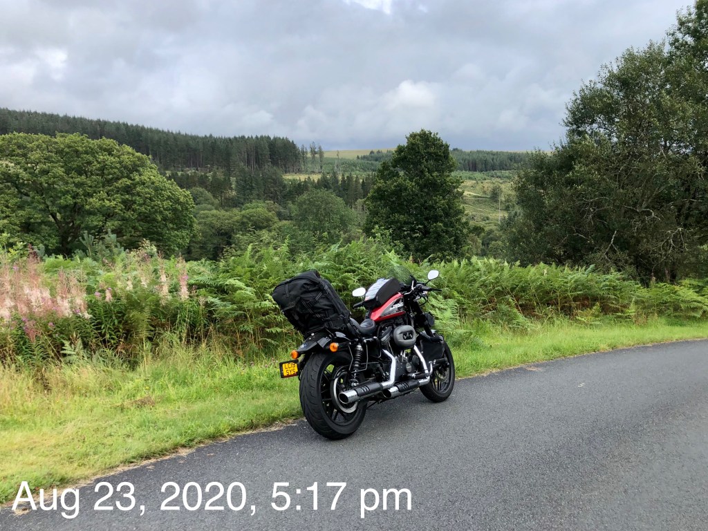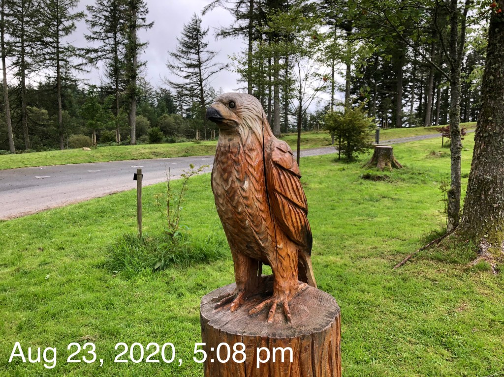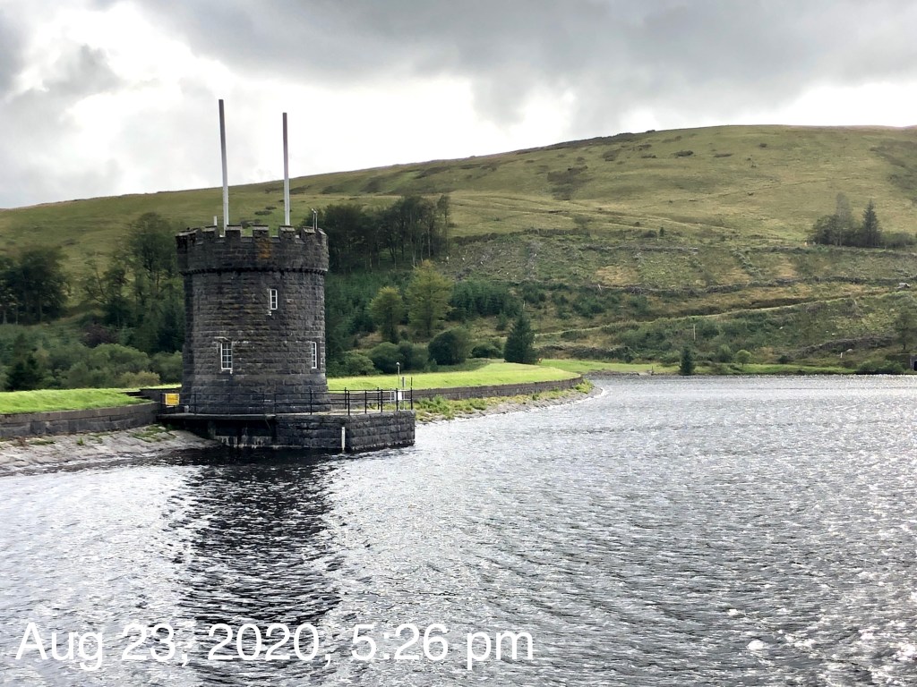I chose the scenic route through Brecon Beacons National Park. More of those ‘farmyard’ style roads complete with amused glances from those BMW trailies again! The Garwnant Visitor Center was a welcome stop for a much needed coffee and chocolate bar. There were some fantastic views of the surround forest and Llwyn-on reservoir. Also the work of a locally commissioned ‘chainsaw’ artist could be seen dotted around the center. The reservoir itself has a castle-like valve tower complete with slit windows and battlements – I’m choosing to count that as another castle on my tally 😉