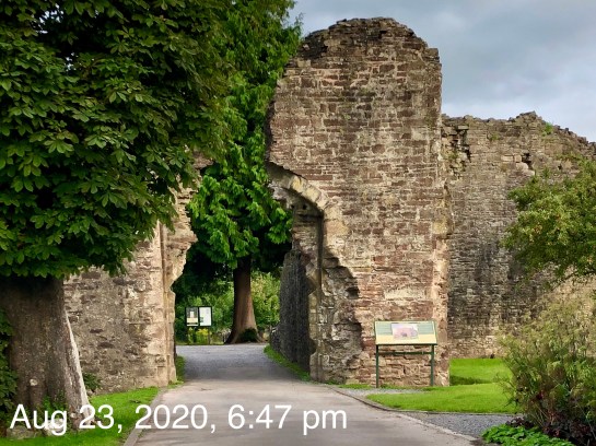 Heading east out of Brecon Beacons park I arrived next at Abergavenny. The 11th Century Abergavenny castle tower is accessed via a narrow single tracked road that runs along the later 12th Century wall. So narrow in fact that to get both my bike and the tower in the same shot I had to more or less lie down underneath my bike!