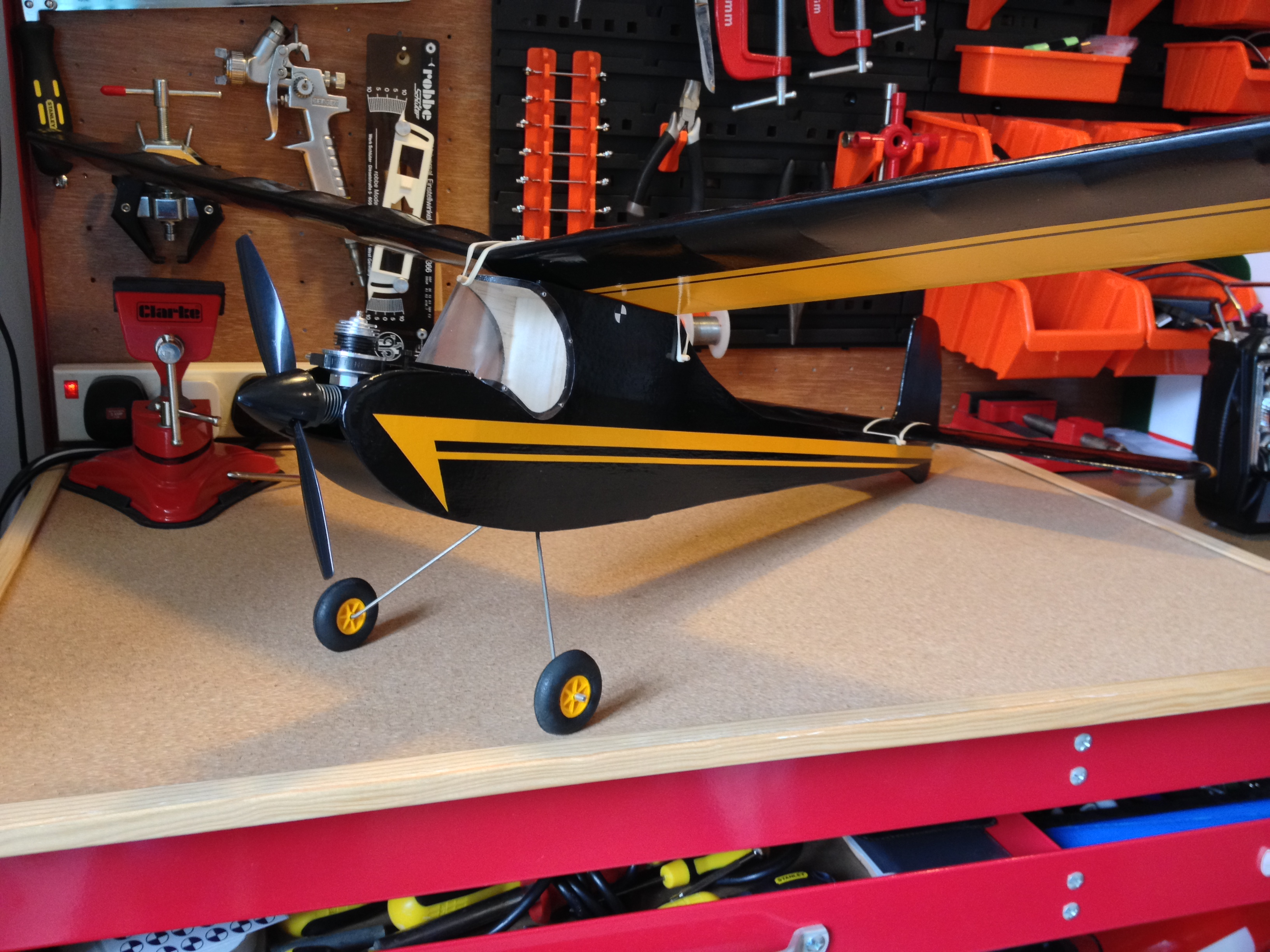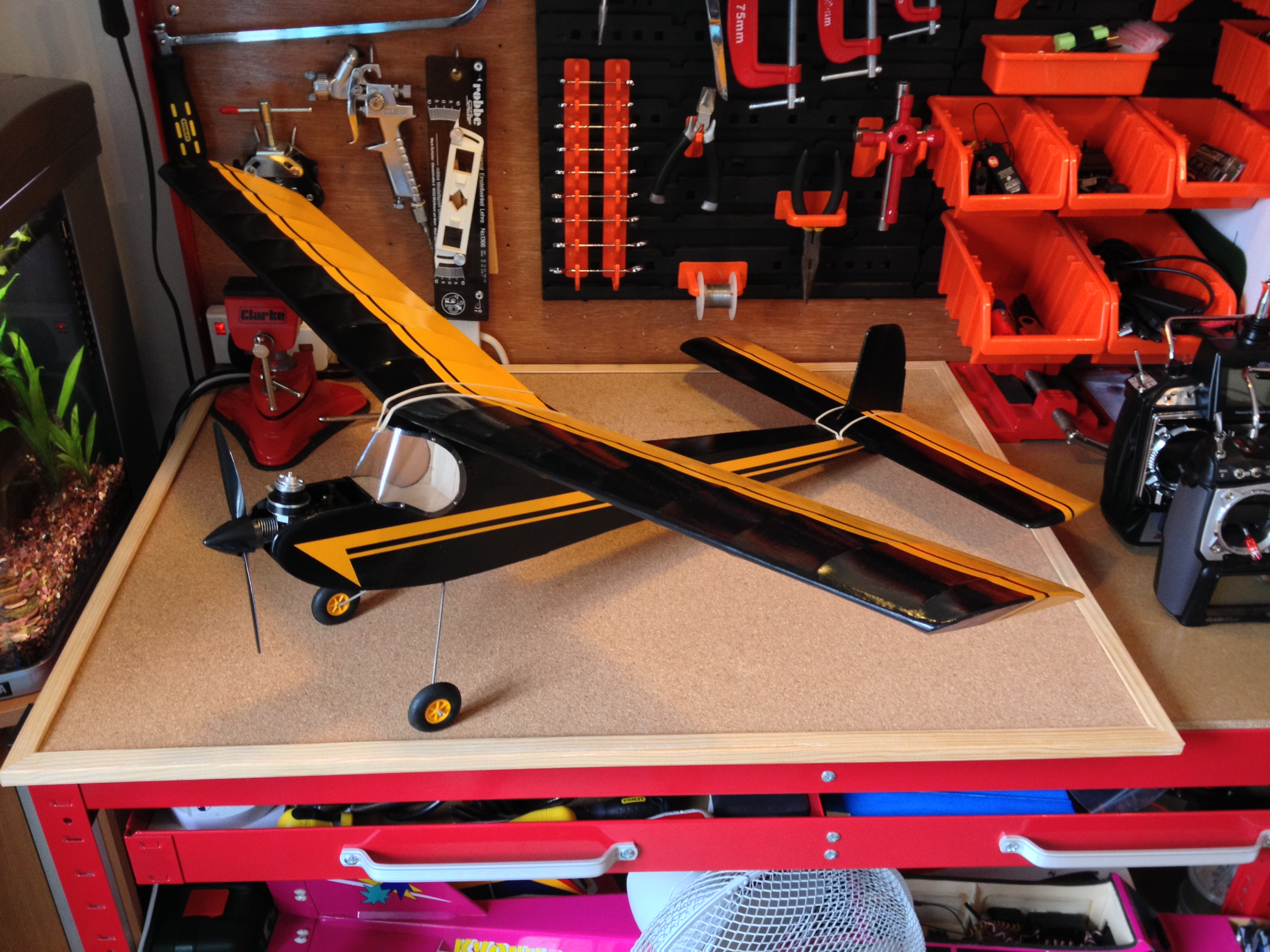 Final weight came to 450g. I’ve not exactly made any efforts to save weight so not to bad considering the metal geared servos, 2oz tank, 900mah battery pack and standard receiver. I fly from grass so prefer ruggedness over a slower stall.