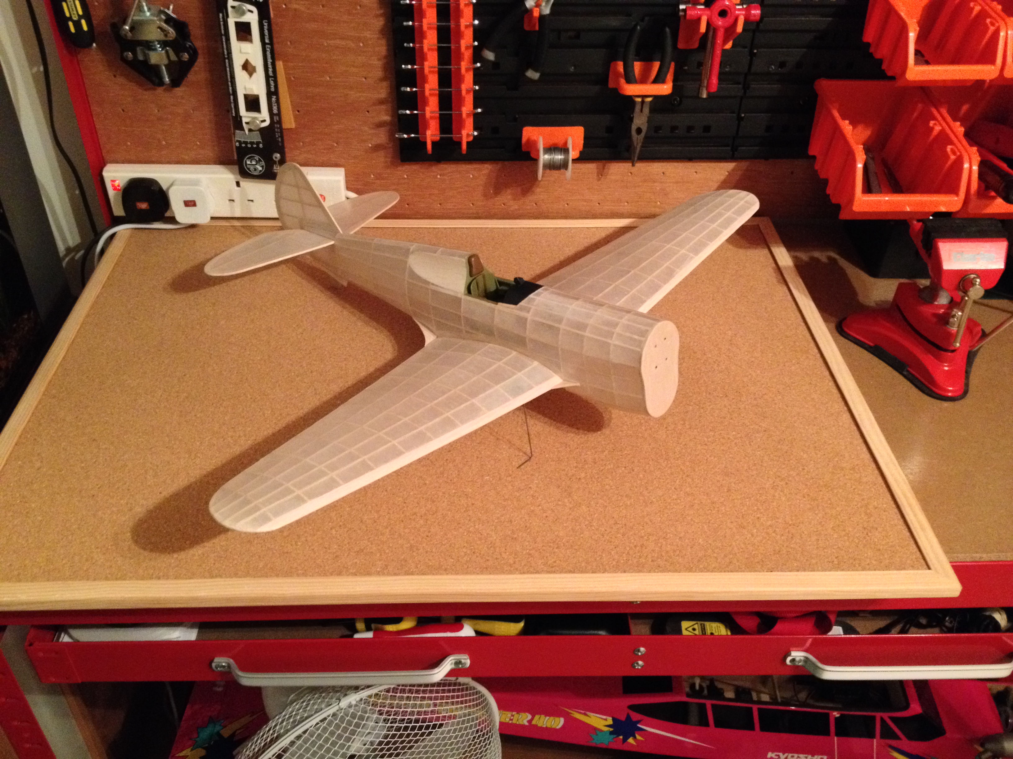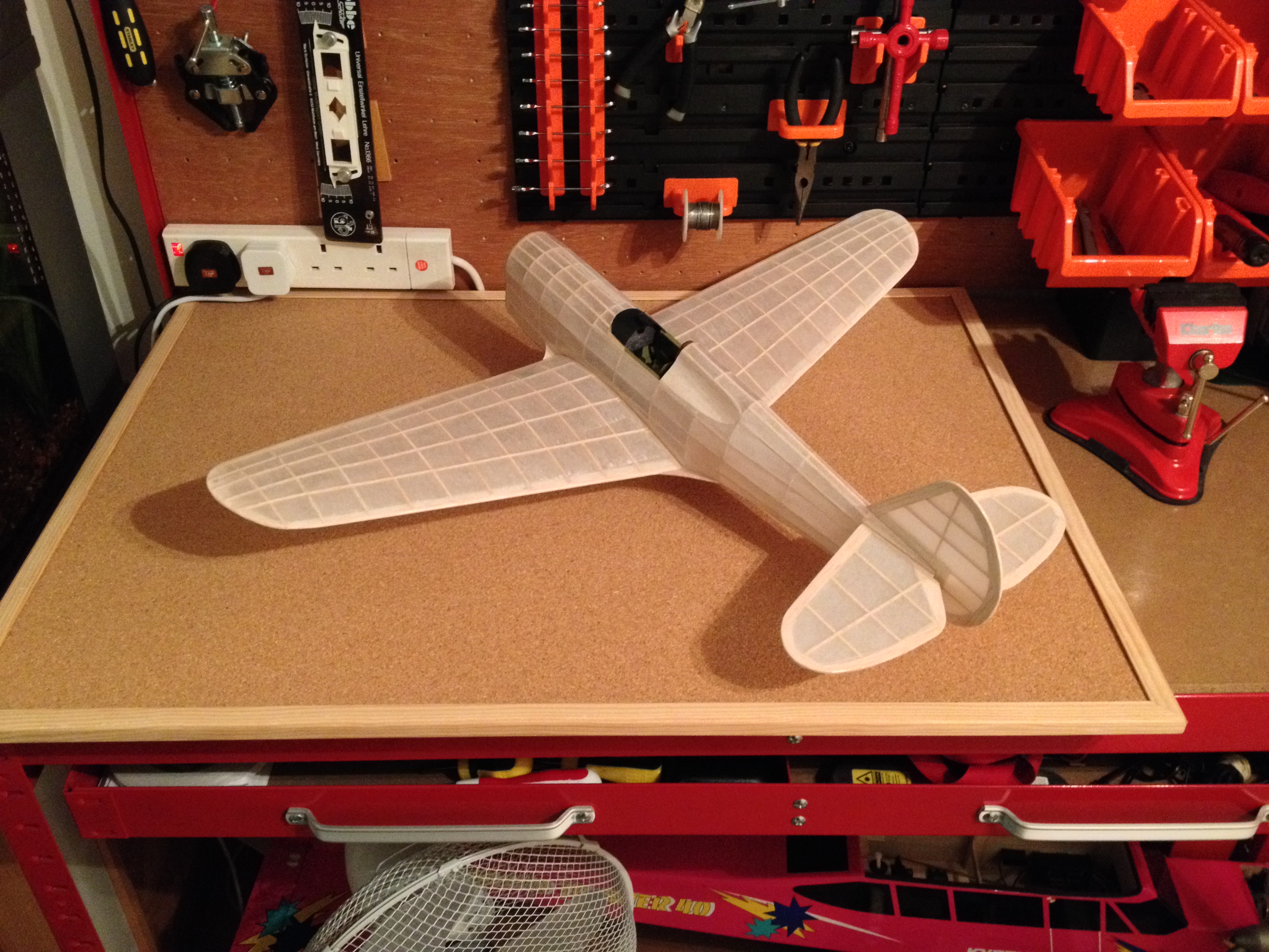 Well, it’s taken a while but I’ve finally finished it. Having made the engine cowling detachable I had not helped myself when it came to the tiger shark decals. With lots of Klear (Johnsons) I managed to coax them into position and make a successful cut in the right place. A little touch up of the teeth with paint around the front of the cowling finished off the front end nicely. The rest of the decals were applied over a localised pre-coat of Klear before the entire model was sprayed with satin fuel proofer (Flair spectrum) to both seal the decals in and protect the model from the glow engine up front.